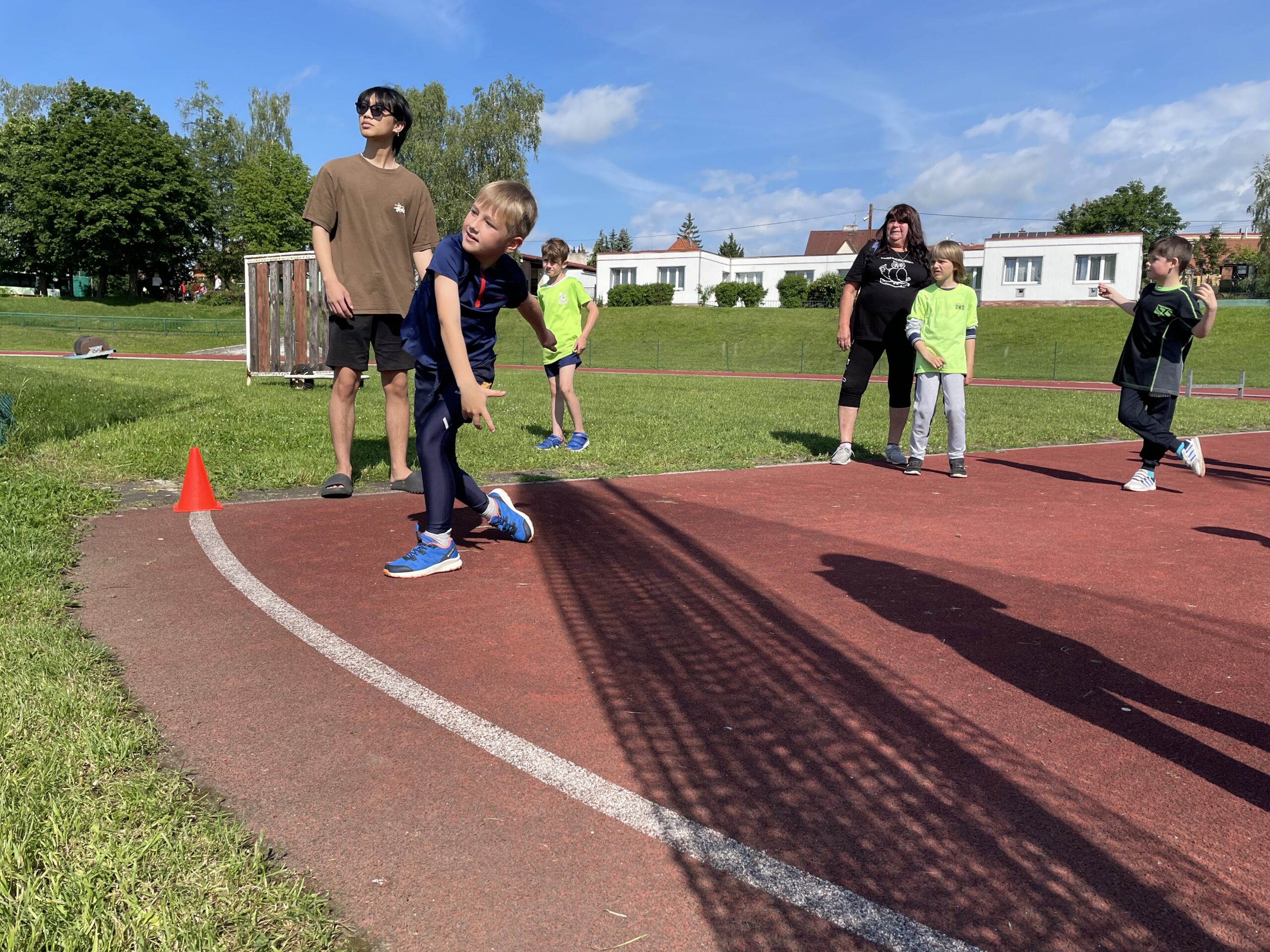 Ve čtvrtek 6. června se nejlepší sportovci 1. stupně naší školy zúčastnili Atletických závodů ve Stříbře, dříve známých jako Cvrčkiáda. V disciplínách sprint 60m, skok daleký, hod kriketovým míčkem a běh na 300/500/600m změřili své síly s dětmi ze škol tachovského okresu. V konkurenci se neztratili a dovezli si 11 medailí: 2 zlaté, 2 stříbrné, 7 bronzových a spoustu dalších pěkných umístění.